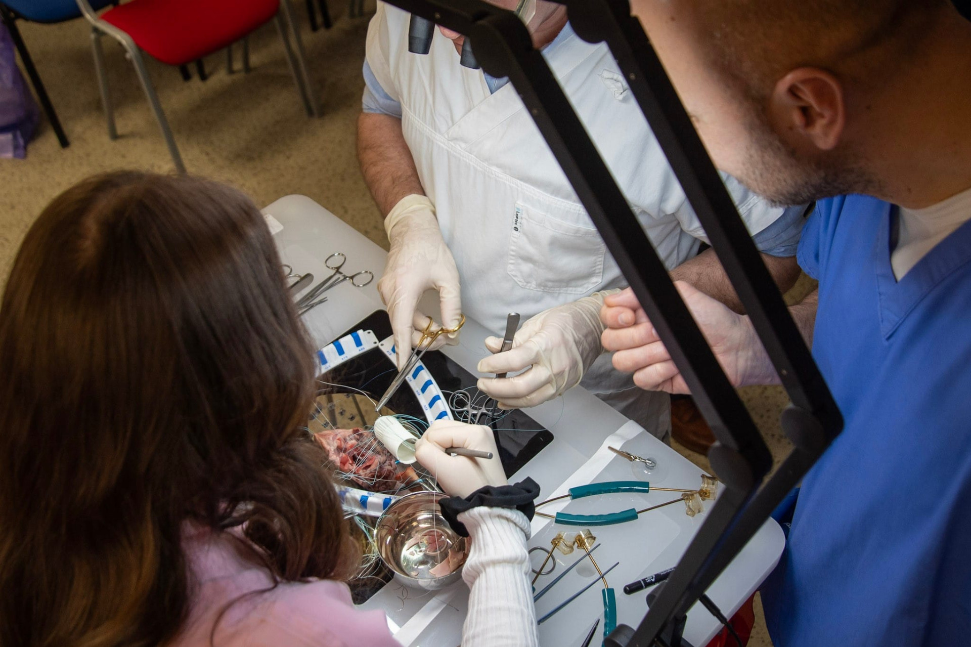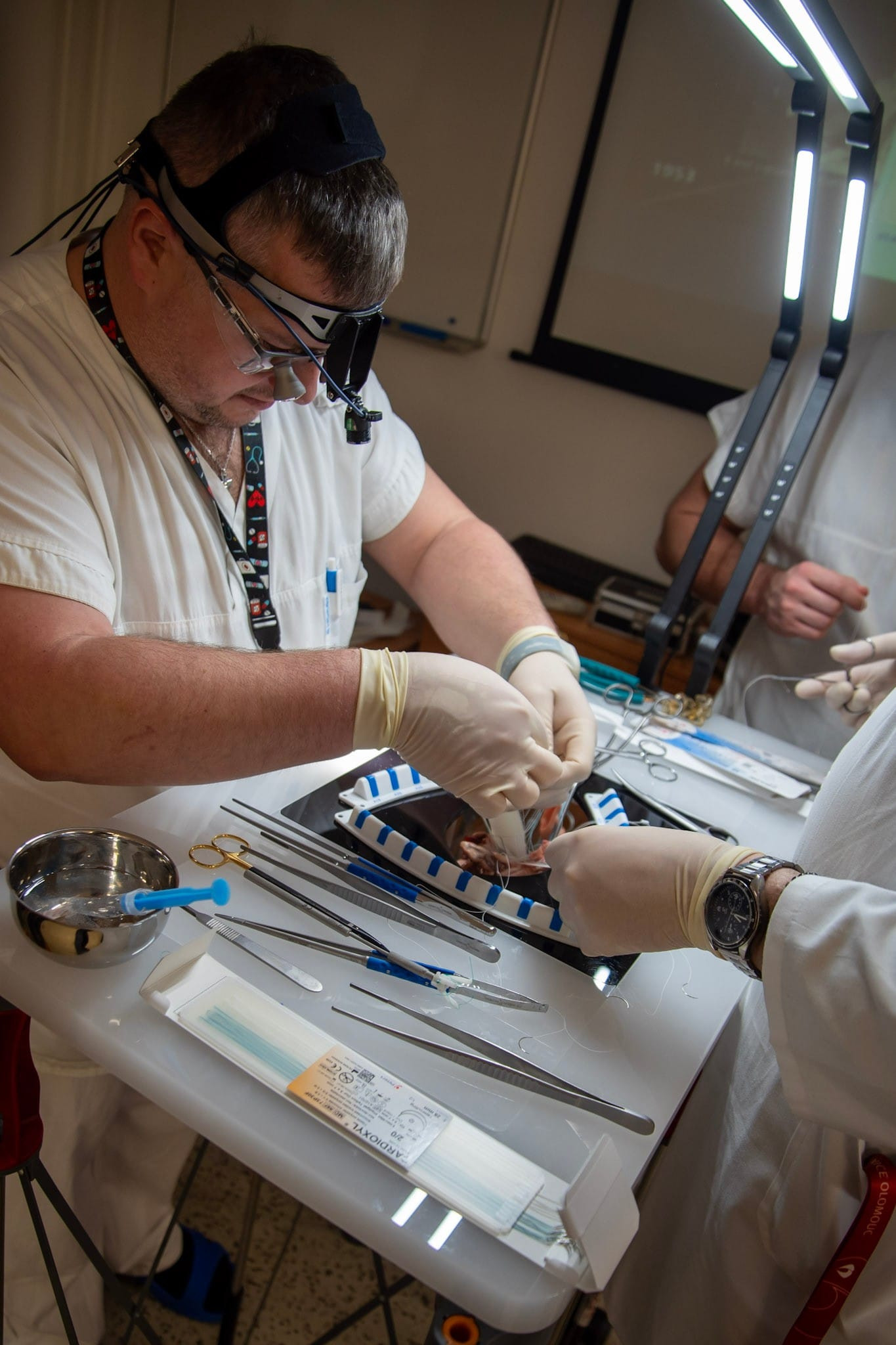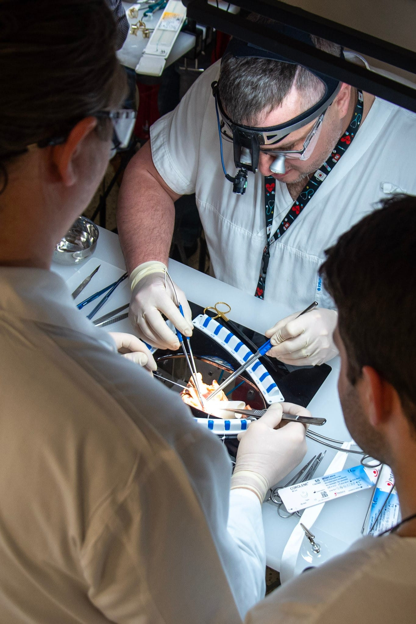 Odborné vedení kurzu zajistili primář kardiochirurgického oddělení Nemocnice Podlesí Třinec MUDr. Piotr Branny, přednosta kliniky doc. MUDr. Martin Šimek, Ph.D., zástupce přednosty pro vědu a výzkum MUDr. Vladimír Svitek, Ph.D., a také MUDr. David Nešpor, Ph.D., z Centra kardiovaskulární a transplantační chirurgie v Brně.